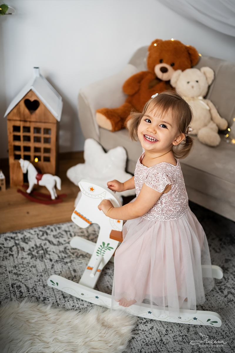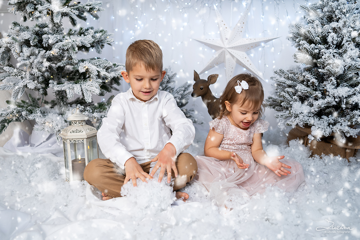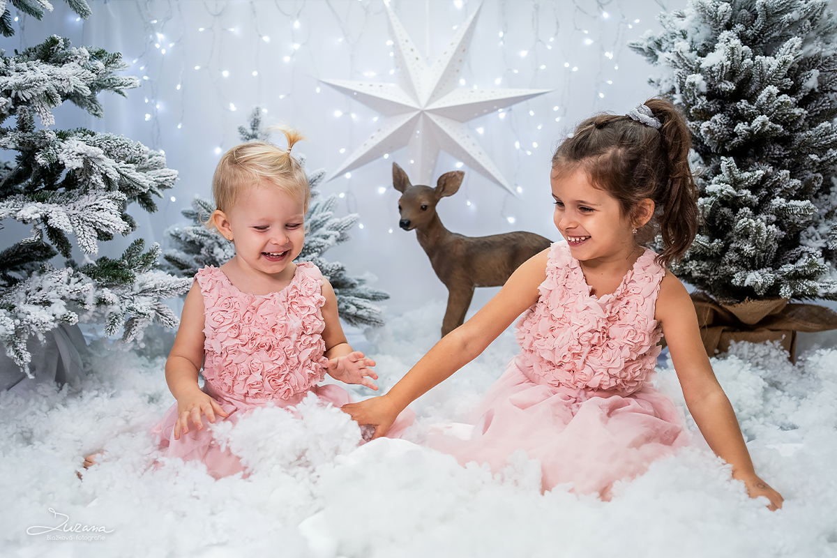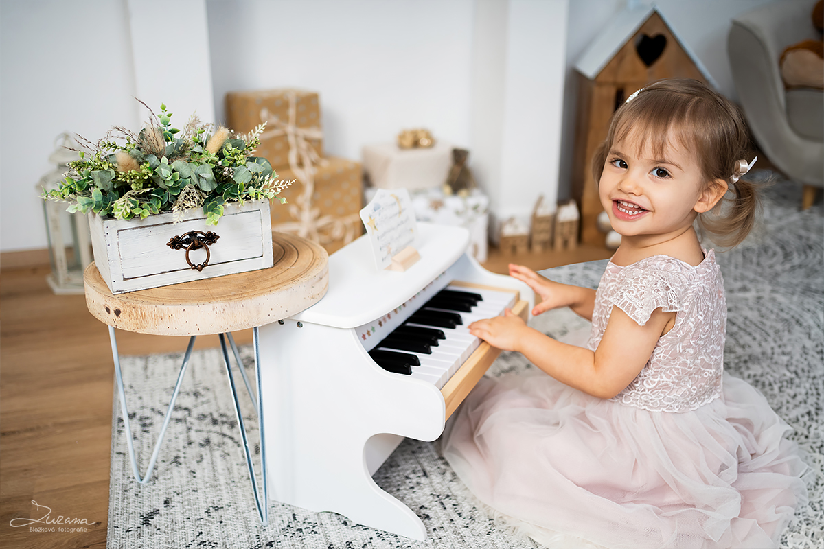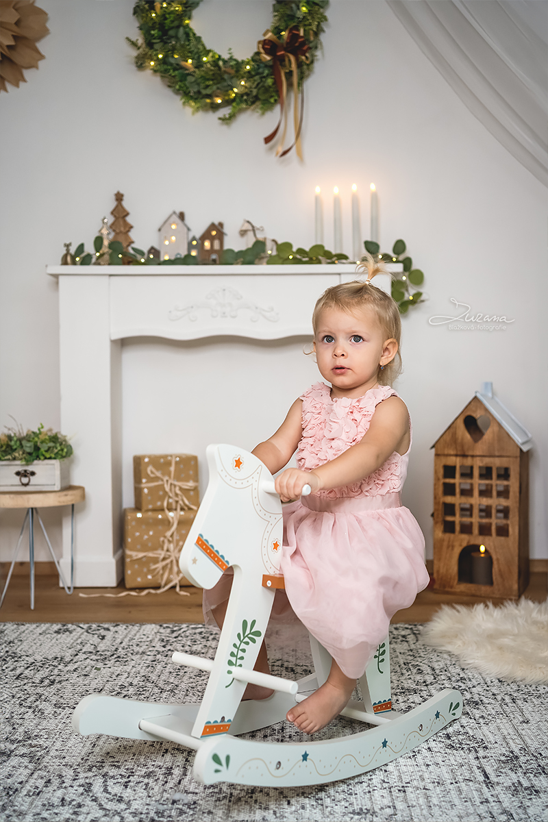☺️ Dobrou náladu - u dětí se samozřejmě nedá naplánovat, ale myslím, že dovádění v umělém sněhu nebo houpání na houpačce či koníku nebo hraní na mini piano je určitě zabaví, alespoň na dobu potřebnou na zachycení potřebných záběrů.